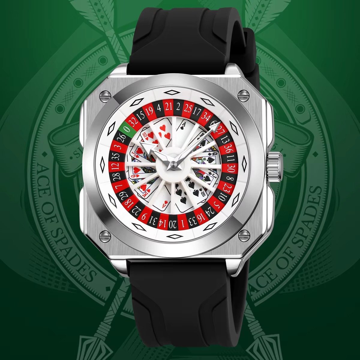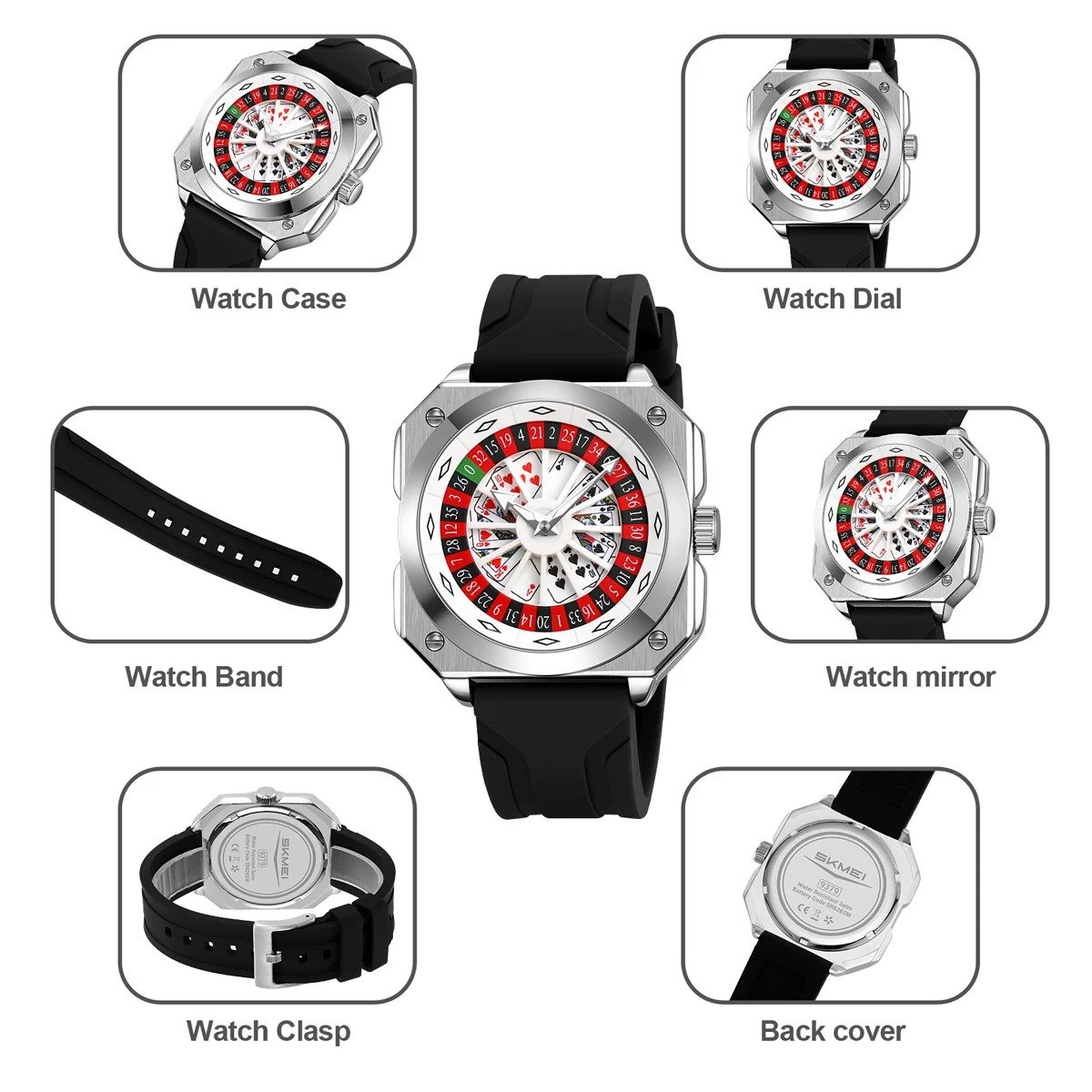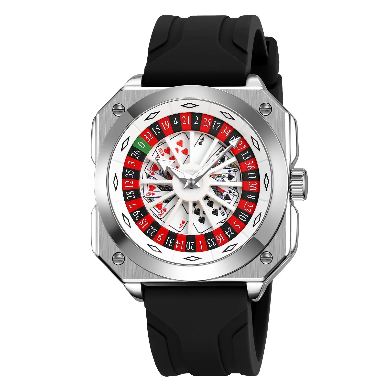 SKMEI – 9379 – Rotating Poker Dial Silicone Wrist Watch – silver/black