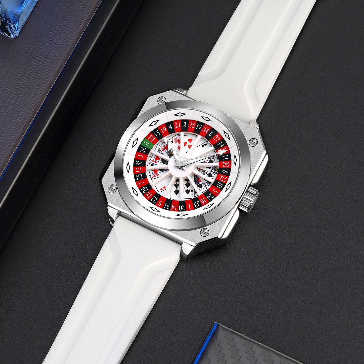 SKMEI – 9379 – Rotating Poker Dial Silicone Wrist Watch – Silver/white