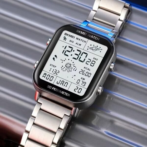 Original price was: ₨ 7,732.₨ 5,413Current price is: ₨ 5,413.Skmei – 1888 – Digital Dial Step Count Pedometer Stainless Steel Watch – Silver
