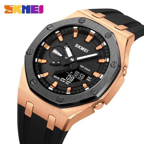 Original price was: ₨ 4,938.₨ 3,723Current price is: ₨ 3,723.SKMEI – 9377 – Sporty Multi-Function Quartz Watch – rosegold/black