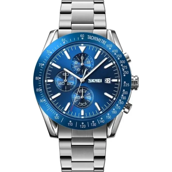 Original price was: ₨ 5,393.₨ 3,775Current price is: ₨ 3,775.Skmei – 9253 – Elite Chronograph Watch – Silver/Blue-Steel