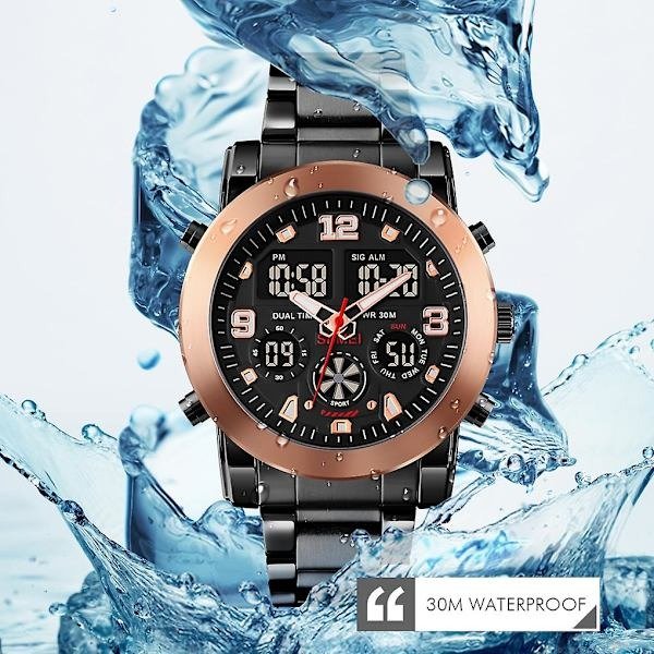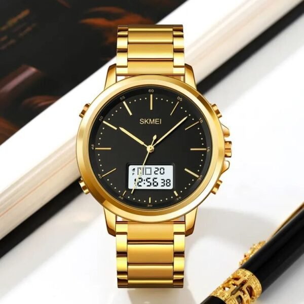 Original price was: ₨ 6,968.₨ 4,878Current price is: ₨ 4,878.Skmei – 2271 – Digital Dual Time Men’s Stainless Steel Watch – gold