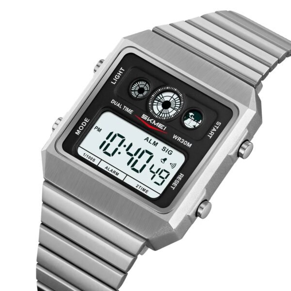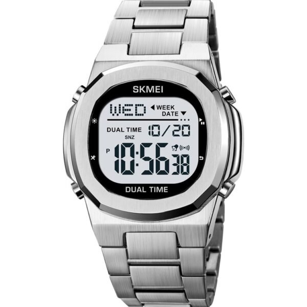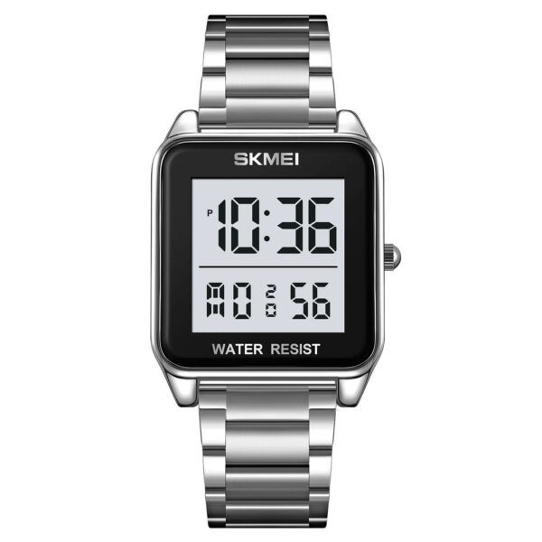 Original price was: ₨ 4,241.₨ 2,969Current price is: ₨ 2,969.SKMEI 2133 Square Digital Stainless Steel Sports Watch – silver