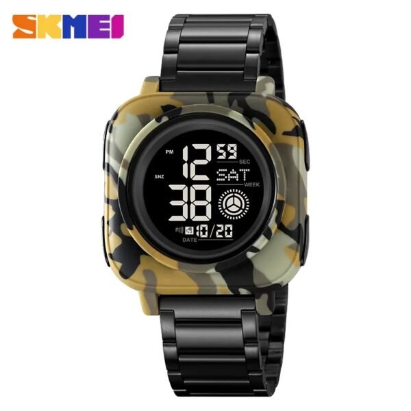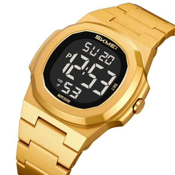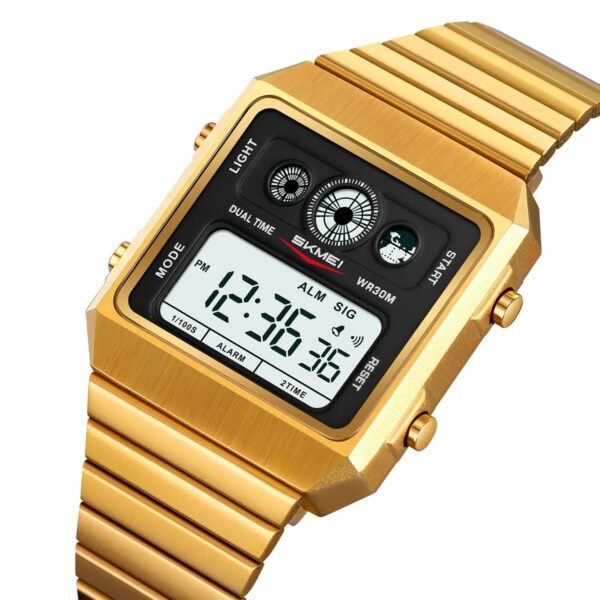 Original price was: ₨ 5,636.₨ 3,945Current price is: ₨ 3,945.SKMEI 2133 Square Digital Stainless Steel Sports Watch – gold