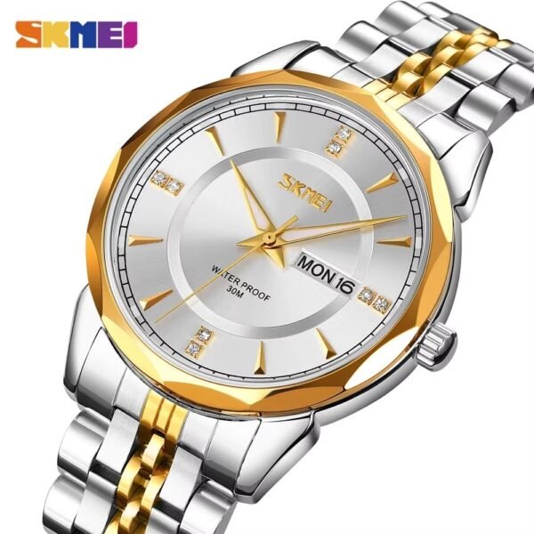 Original price was: ₨ 5,486.₨ 3,840Current price is: ₨ 3,840.SKMEI – 9268 – Quartz Stainless Steel Luxury Analog Watch – silver/gold-silver