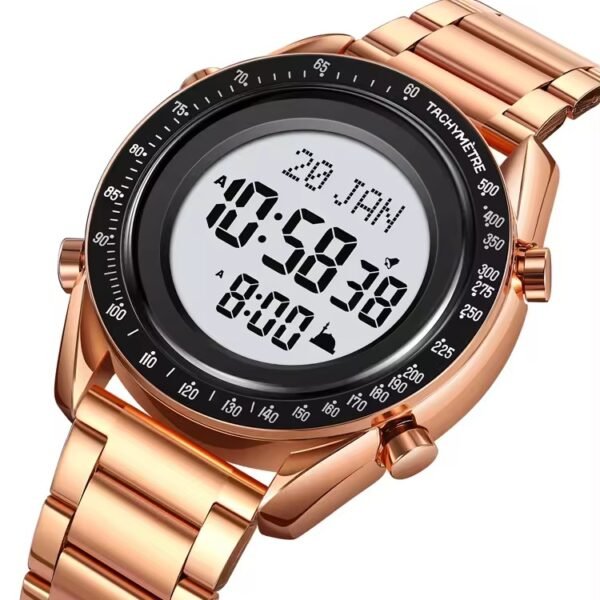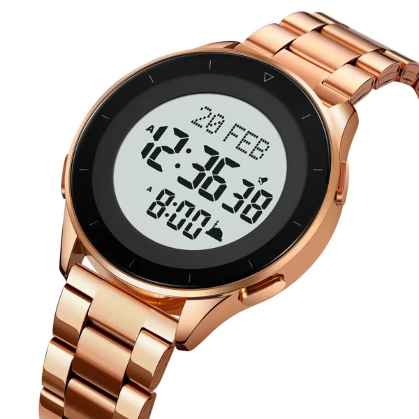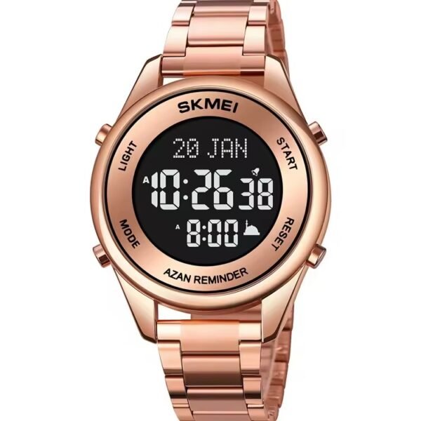 Original price was: ₨ 7,500.₨ 4,775Current price is: ₨ 4,775.SKMEI – 2043 – Qibla Azan Time Reminder Prayer Watch – rosegold/white