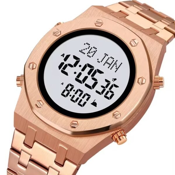 Original price was: ₨ 6,536.₨ 4,575Current price is: ₨ 4,575.SKMEI – 1763 – Qibla Azan Time Reminder Prayer Watch – rose gold/white
