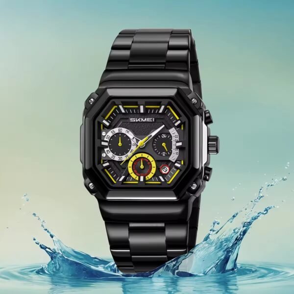 Original price was: ₨ 9,686.₨ 6,780Current price is: ₨ 6,780.Skmei – 9293 – Premium Steel Quartz Performance Watch – black/black