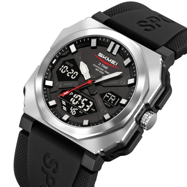 Original price was: ₨ 6,504.₨ 5,370Current price is: ₨ 5,370.SKMEI 2459 Analog Digital World Time Sports Watch – silver/black