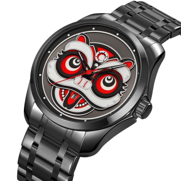 Original price was: ₨ 3,938.₨ 2,756Current price is: ₨ 2,756.Skmei – 9386 – Lion Dance Carved Dial Quartz Watch – Silver/Black