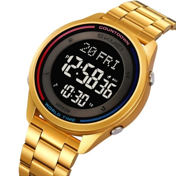 Original price was: ₨ 6,400.₨ 4,470Current price is: ₨ 4,470.Skmei – 2149 – Metal Digital Watch – Gold