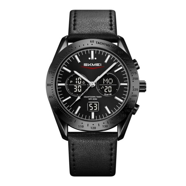 Original price was: ₨ 5,486.₨ 3,840Current price is: ₨ 3,840.SKMEI 2229 Multi-Zone Analog Digital Sports Watch – Black/Black-Leather