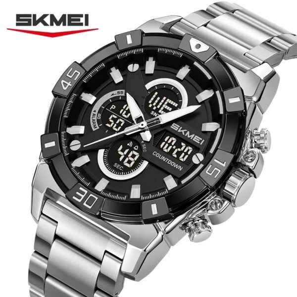 Original price was: ₨ 6,079.₨ 3,987Current price is: ₨ 3,987.Skmei – 2478 – Digital Sports Stainless Steel Watch – Black/White