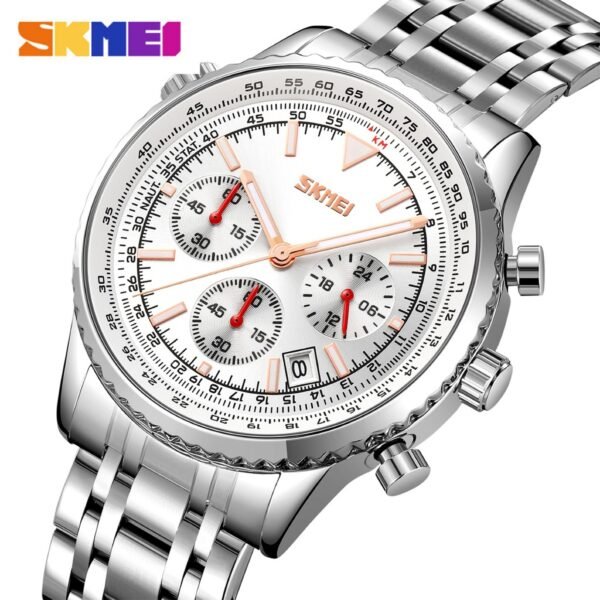 Original price was: ₨ 5,304.₨ 3,713Current price is: ₨ 3,713.Skmei – 2434 – Men’s Stainless Steel Quartz Chronograph Watch – silver